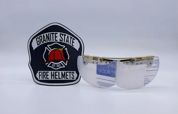 All our stock helmets meet NFPA current requirements and include: leather shell with inner thermoplastic dome, impact cap, comfort pad on all suspension liners, black Nomex combination chinstrap (postman slide / quick release), 8″ black detachable earflap, NFPA goggle with long strap, American made custom “Rising Phenix” finial, reflective lime-yellow tetrahedrons and D-ring on the back brim.